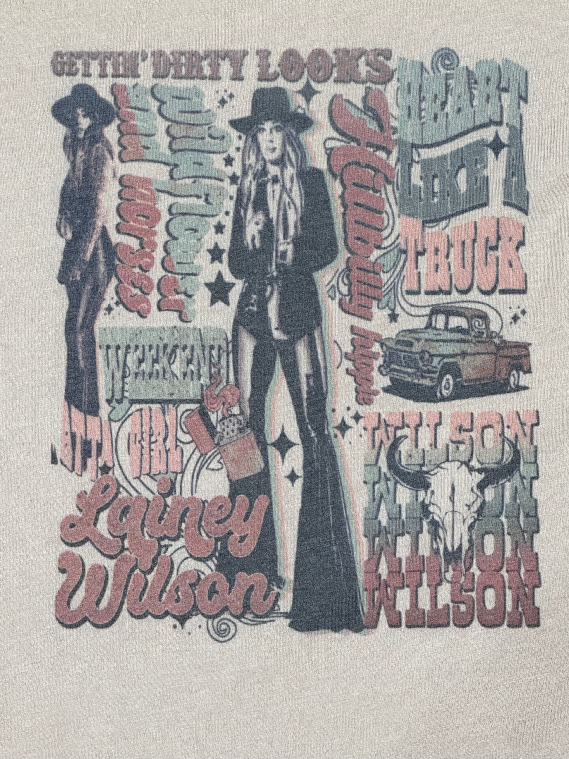 Peach colored Bella Canvas tee with graphic.